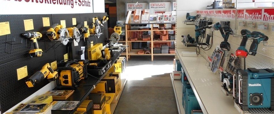 Neben Gullys, Speiern oder Ablaufrinnen bieten wir ein großes Sortiment an Werkzeug, Flüssigabdichtung, Firstband bis hin zu Arbeitskleidung zur direkten Mitnahme in unseren Fachmärkten an.