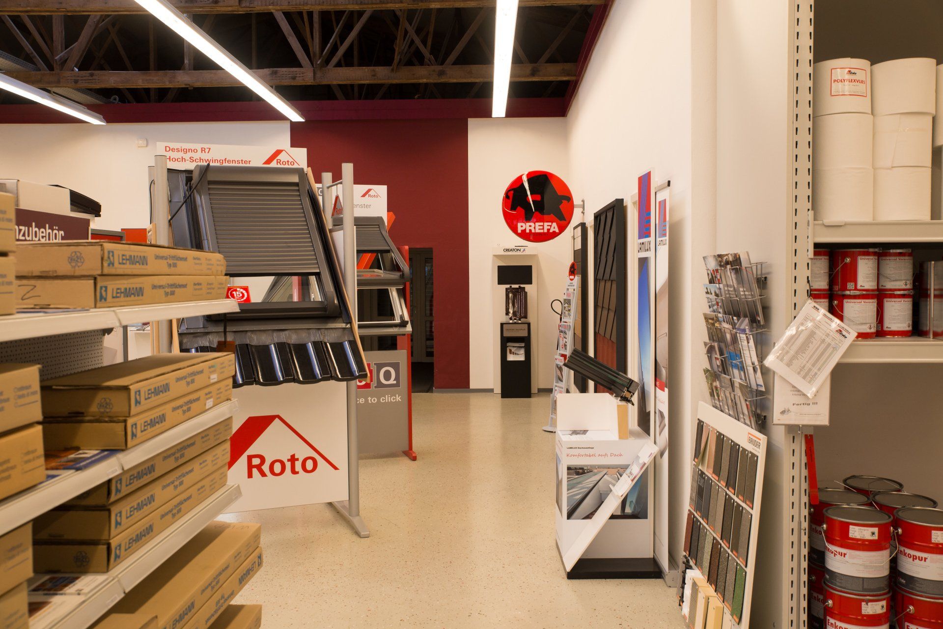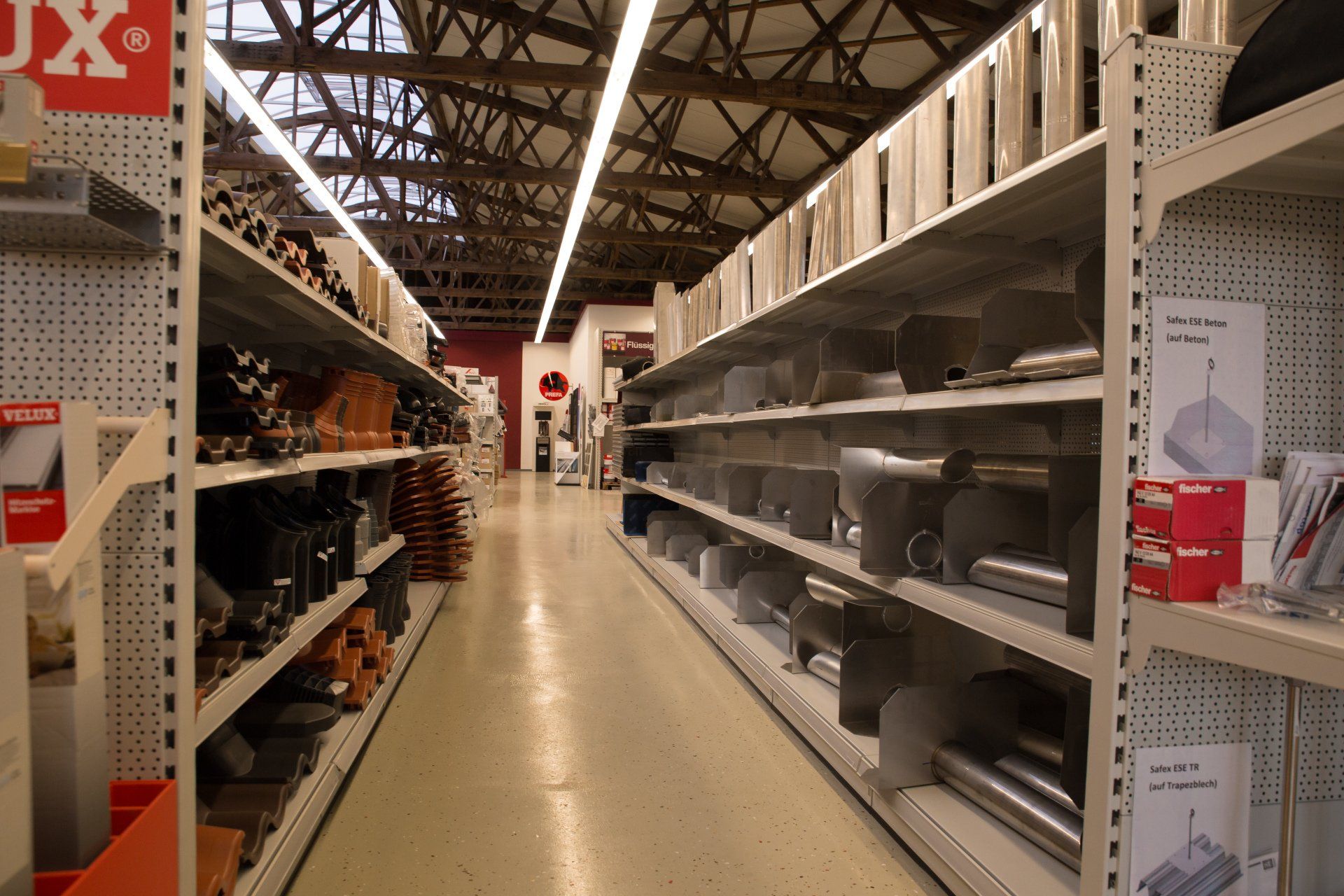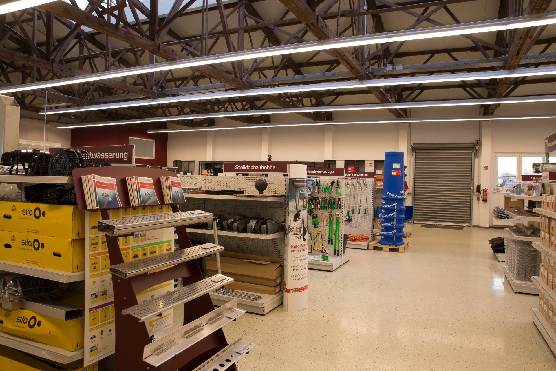 In unseren Bedachungsfachmärkten bieten wir Ihnen vor Ort auf bis zu 7000 m² ein breites Sortiment an Artikeln rund ums Dach.